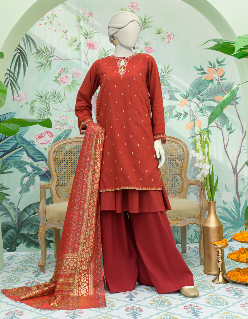 MAROON DOBBY 3PC STITCHED | JJPW-W-JW-24-1780 FB