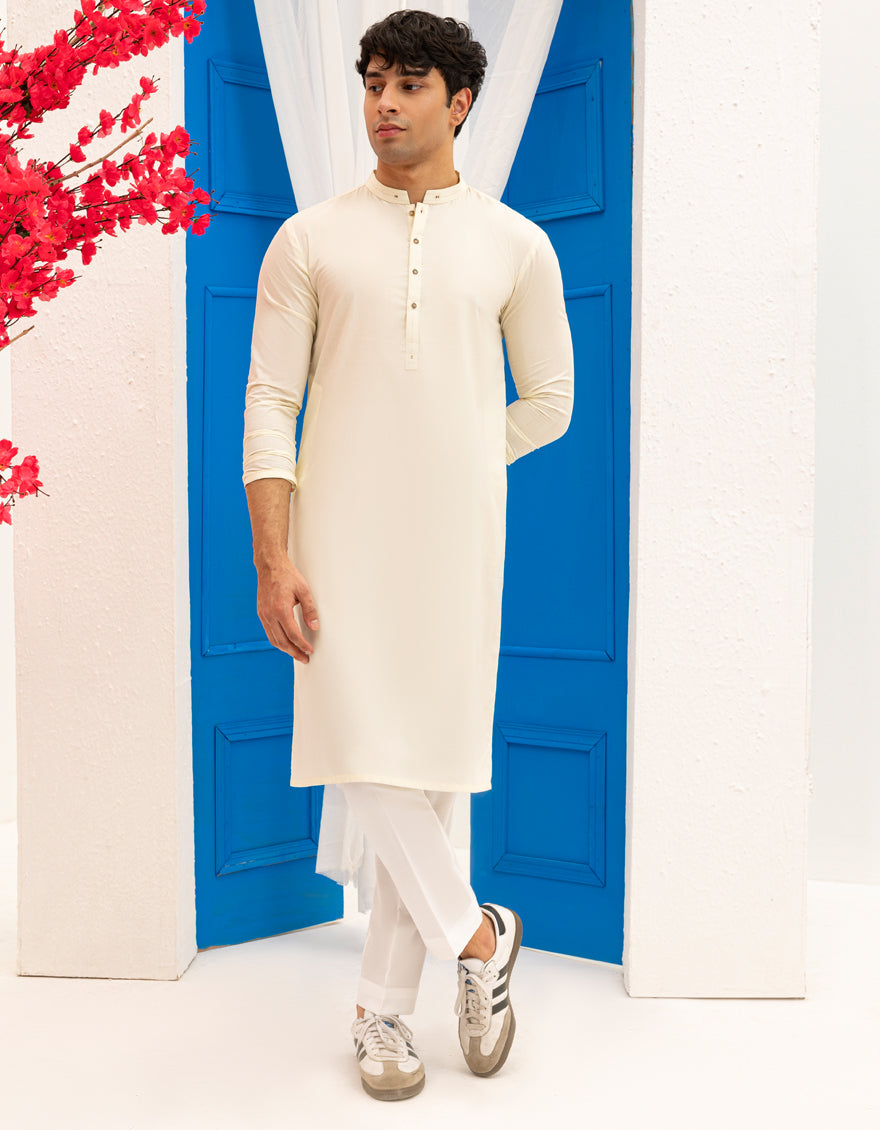 CREAM BLENDED KURTA | JTK-A-46534/S25/JJ93