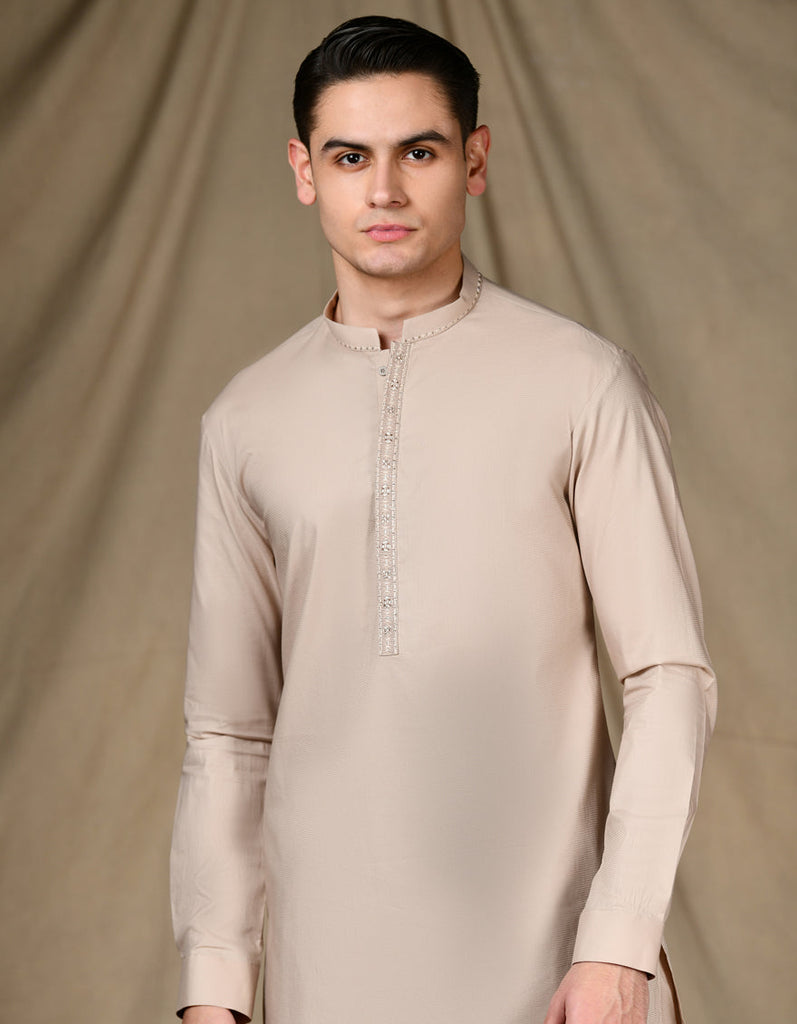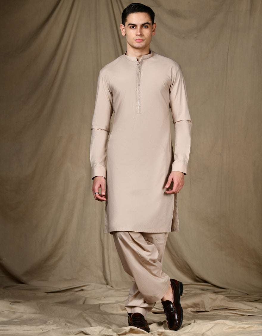 BEIGE COTTON KAMEEZ SHALWAR | JTKS-NZ-04-34640