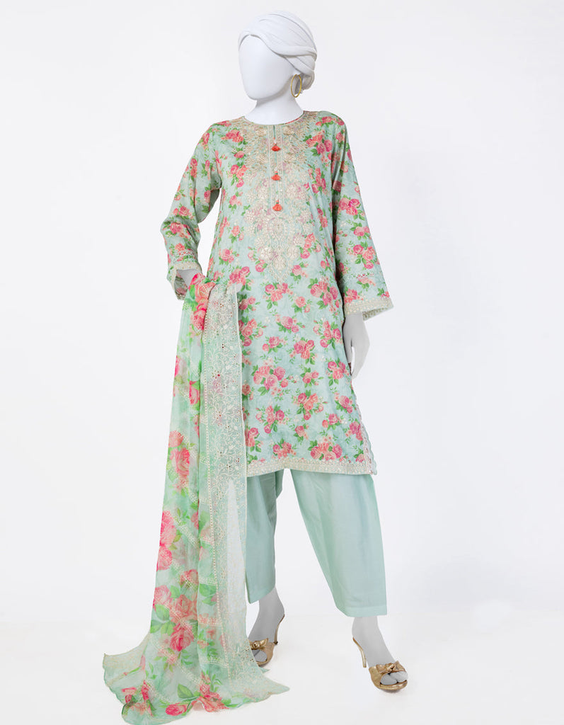 GREEN YARN DYED 3PC UNSTITCHED | AL-LK-972/LK-972A