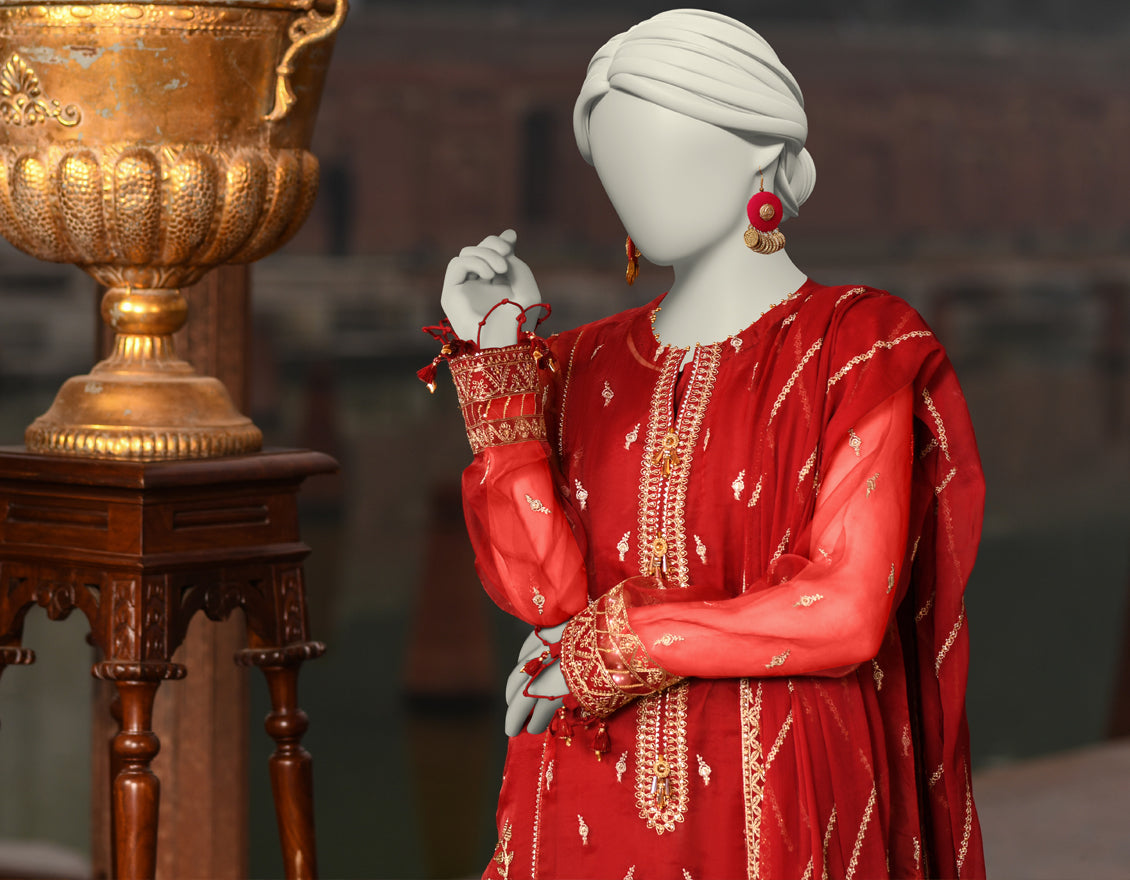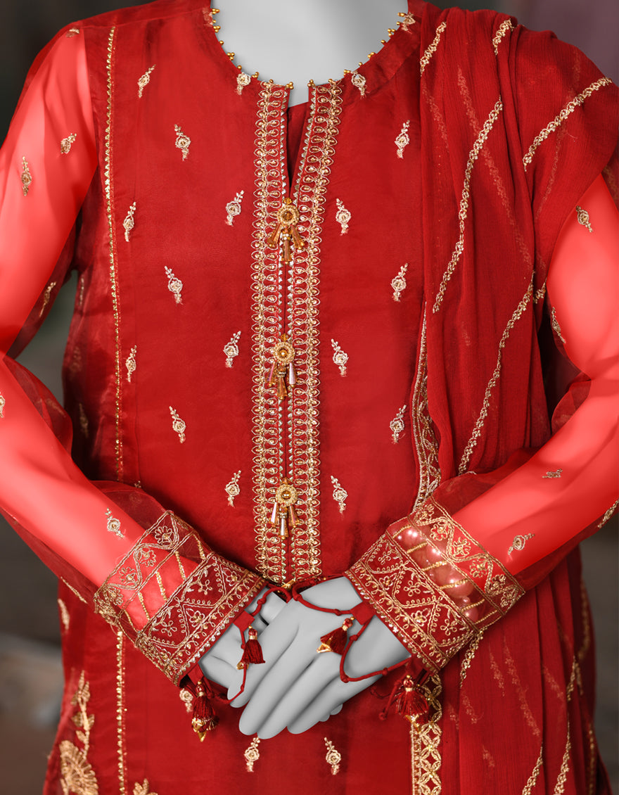MAROON ORGANZA 3PC UNSTITCHED | JJLS-S-JFU-25-704 FB/FALAK-04