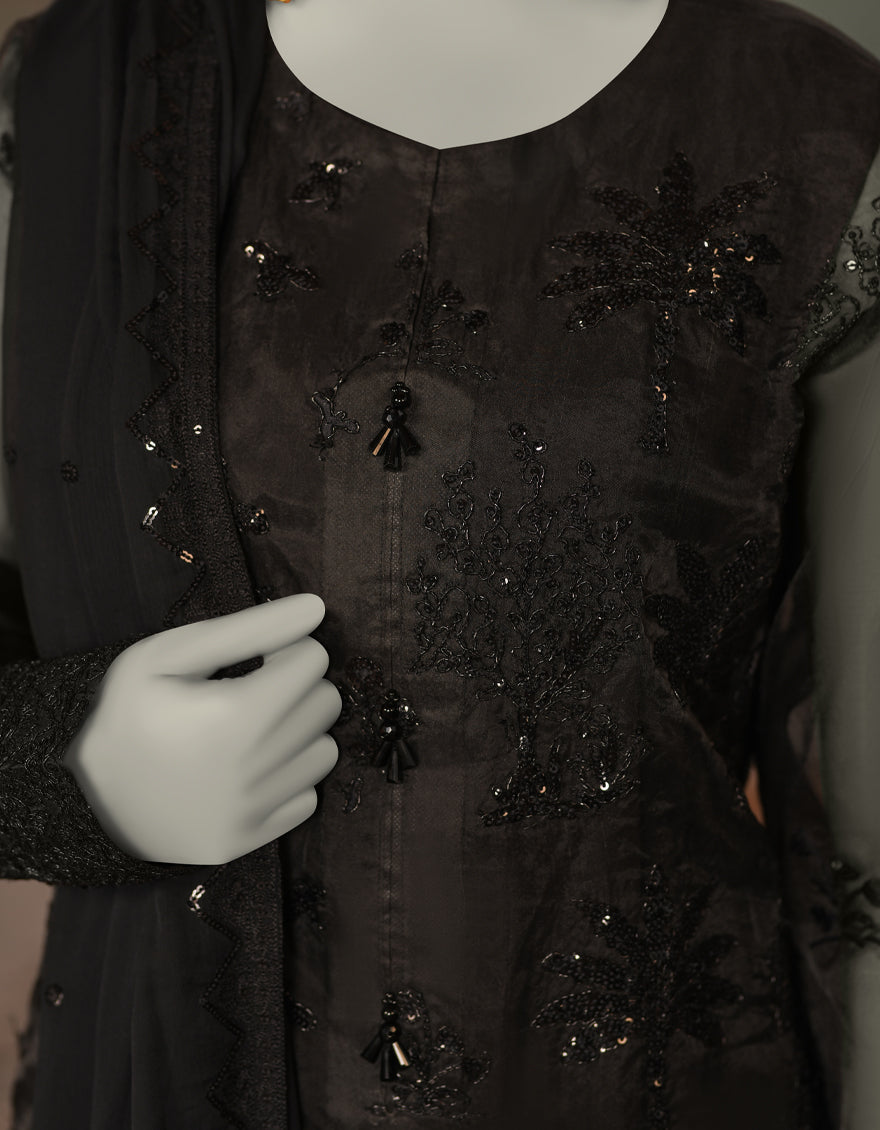 BLACK ORGANZA 3PC UNSTITCHED | JJLS-S-JFU-25-706 FB/FALAK-06