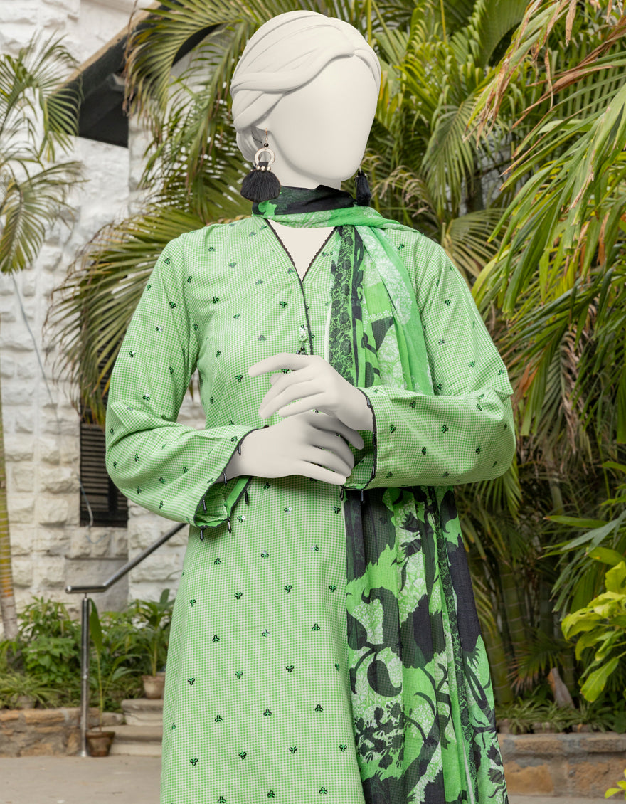 GREEN DOBBY 3PC UNSTITCHED | JJLS-S-JPW-24-029 FB