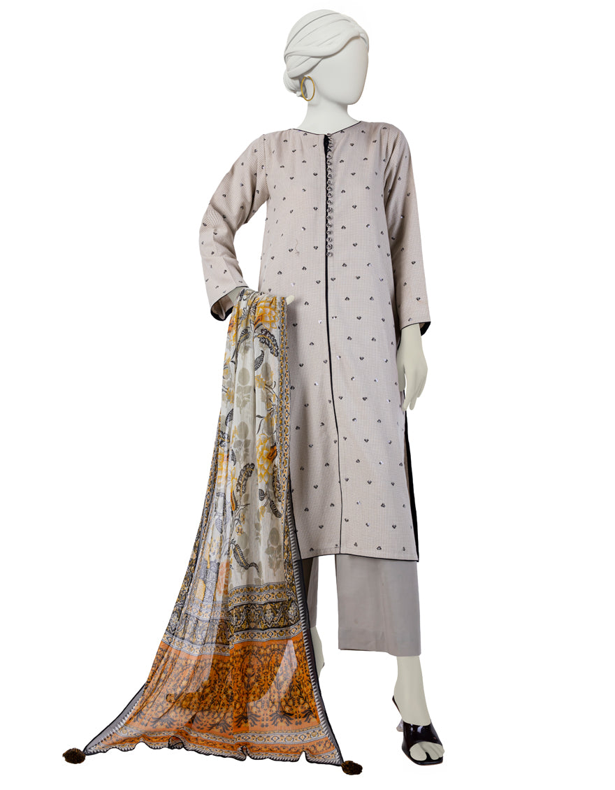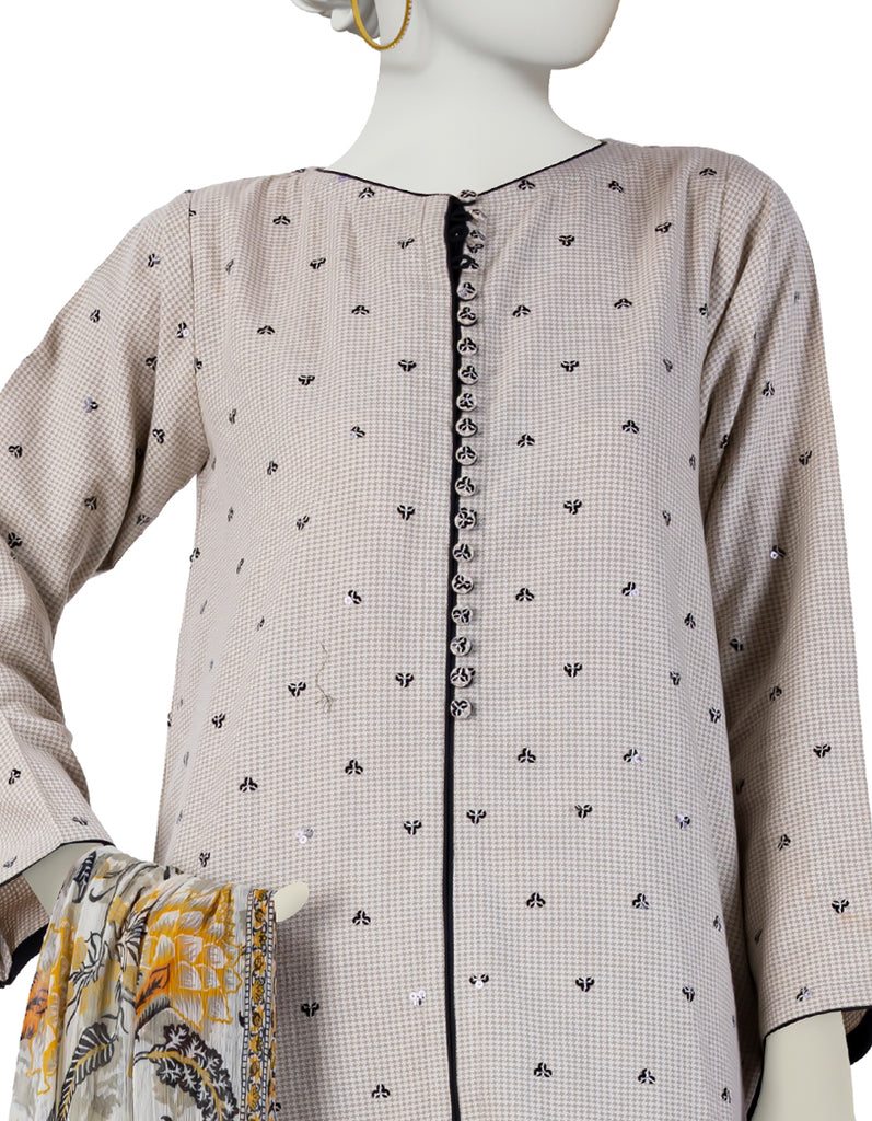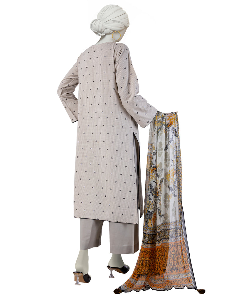 BEIGE DOBBY 3PC UNSTITCHED | JJLS-S-JPW-24-031 FB