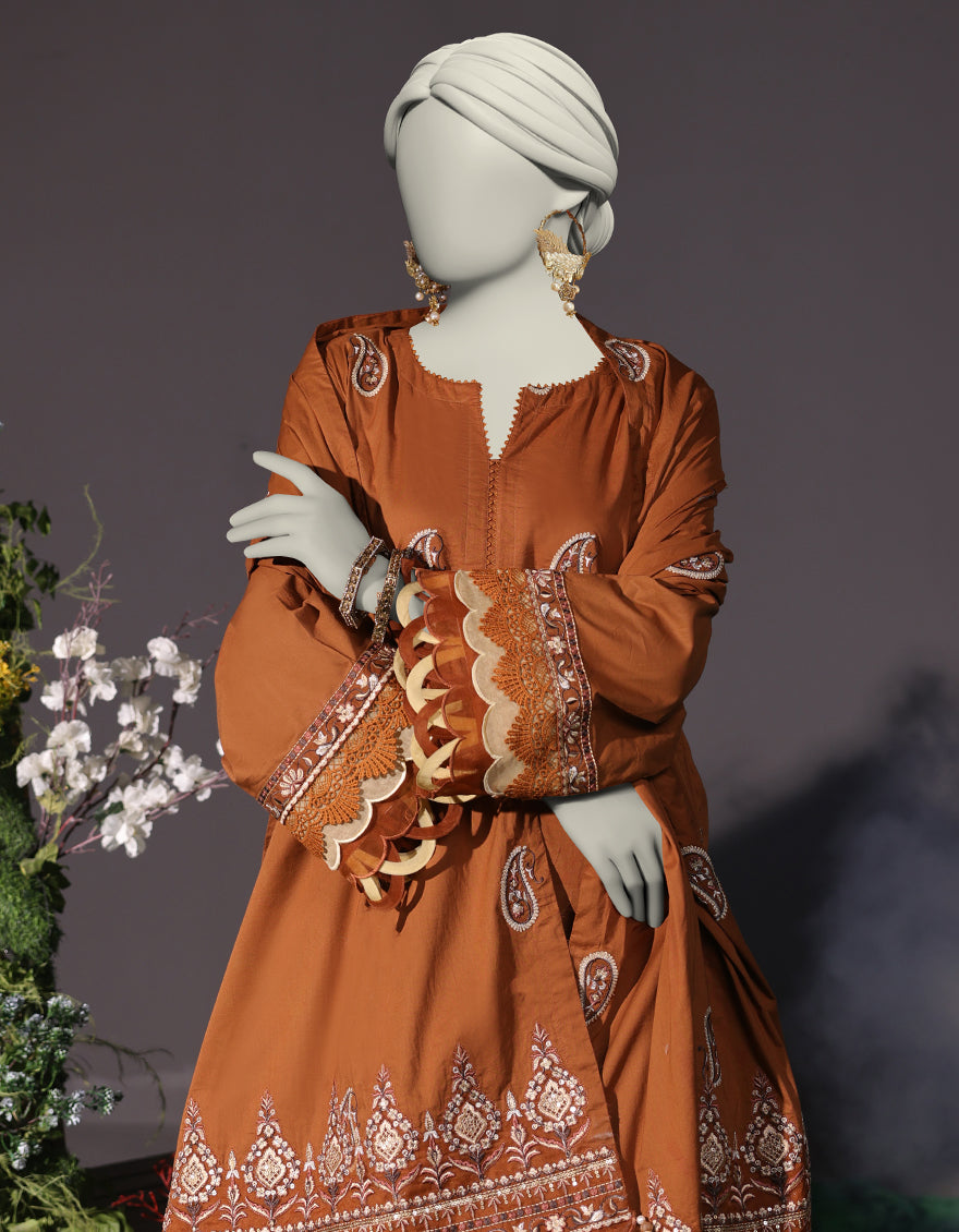 BROWN CAMBRIC 3PC UNSTITCHED | JJLS-W-JW-24-1746 FB