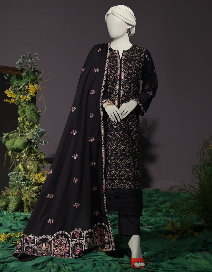 BLACK CAMBRIC 3PC UNSTITCHED | JJLS-W-JW-24-1751 FB