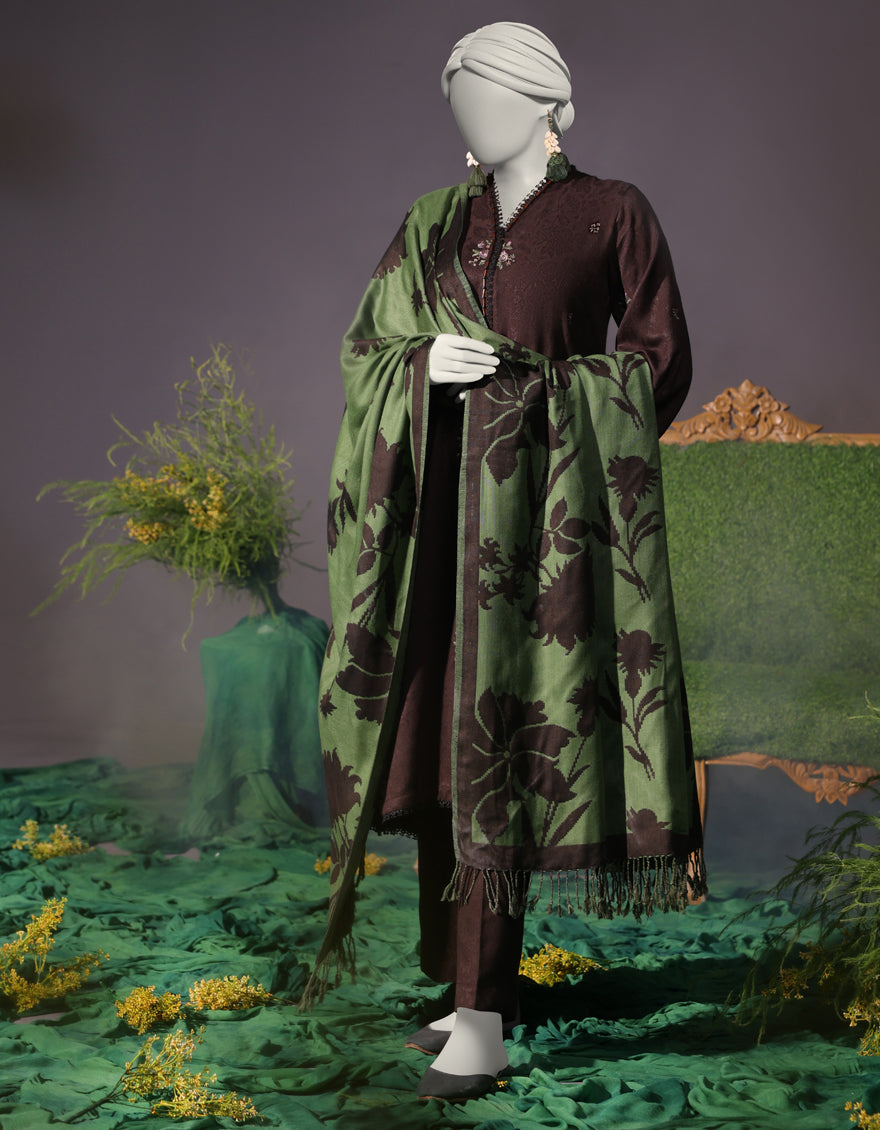 BROWN VISCOSE 3PC UNSTITCHED | JJLS-W-JWU-24-1793 F