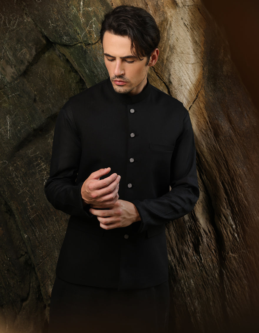 Complete your traditional outfit with this Black Suiting Waistcoat. It adds a touch of class and complements your look perfectly.