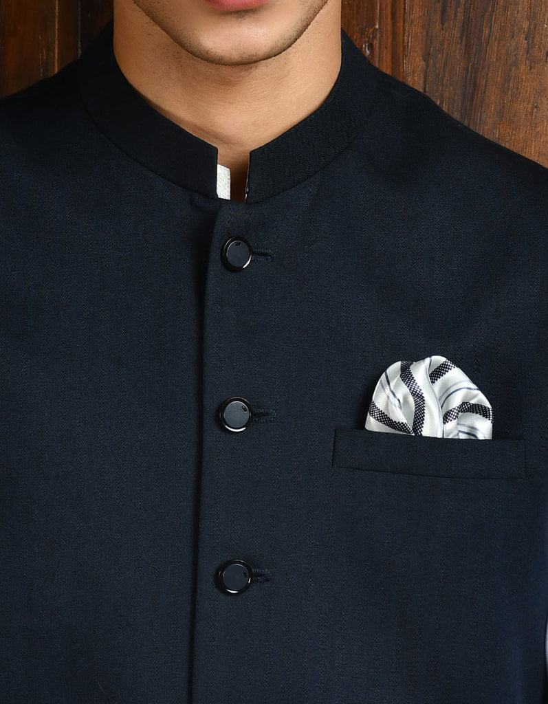Complete your traditional outfit with this Navy Blue Suiting Waistcoat. It adds a touch of class and complements your look perfectly.