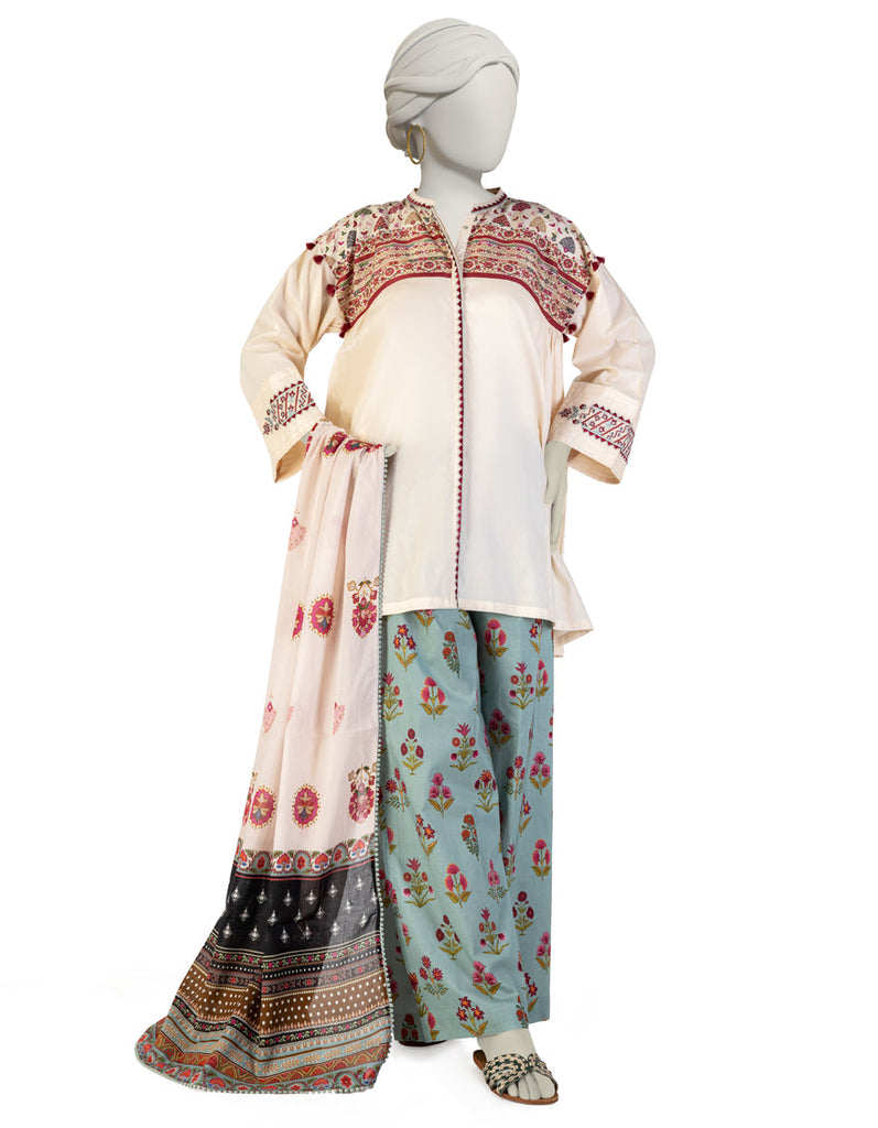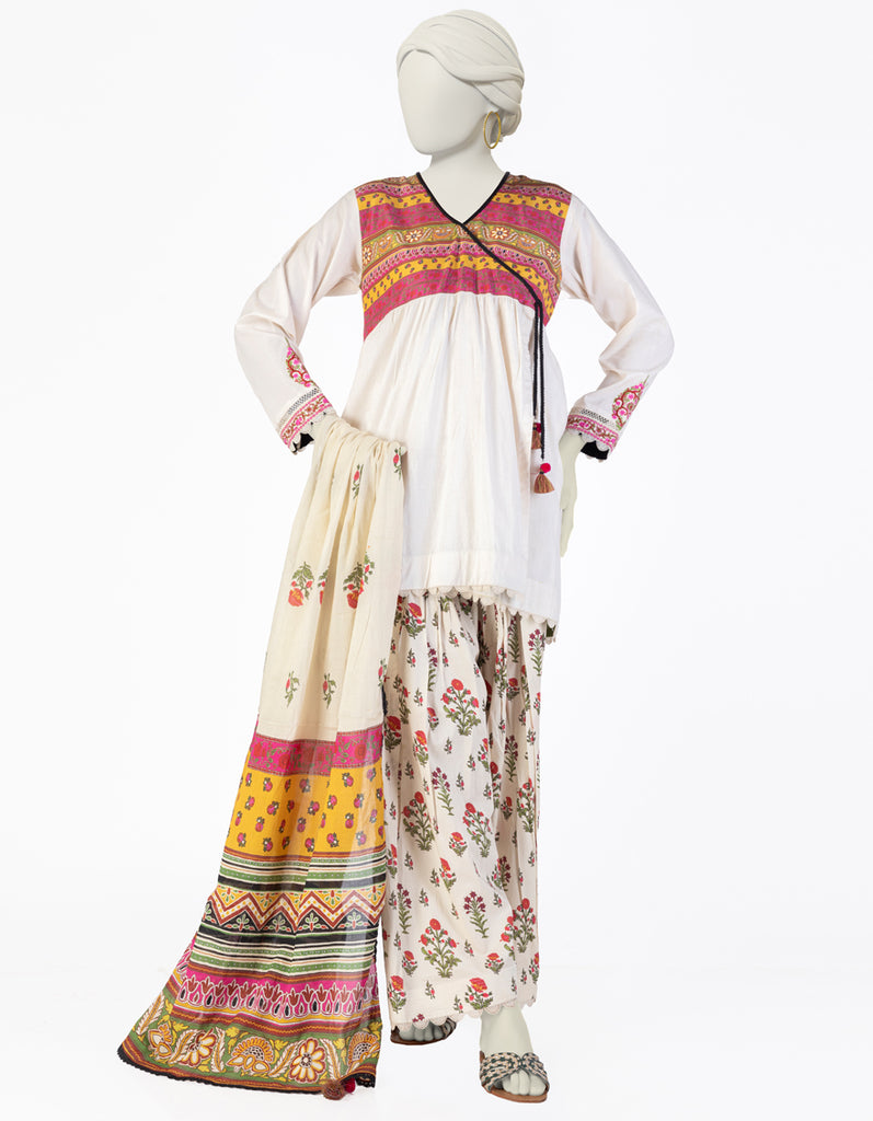 OFF WHITE LAWN KURTI | JJLK-S-JSS-25-354 FB/ CHUNRI-02