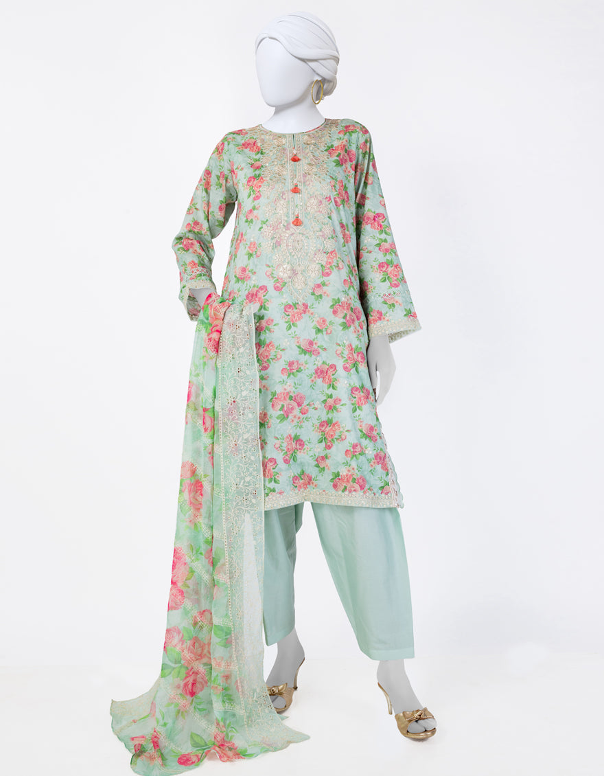 GREEN LAWN 3PC STITCHED | JLAWN-S-25-843/S FLORIST-03