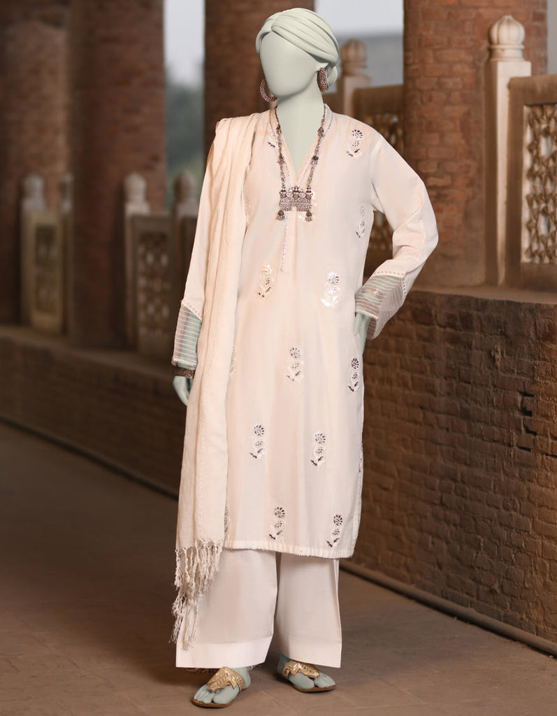 WHITE LAWN 3PC STITCHED | JLAWN-S-25-031/S CHAMPA PANI-1