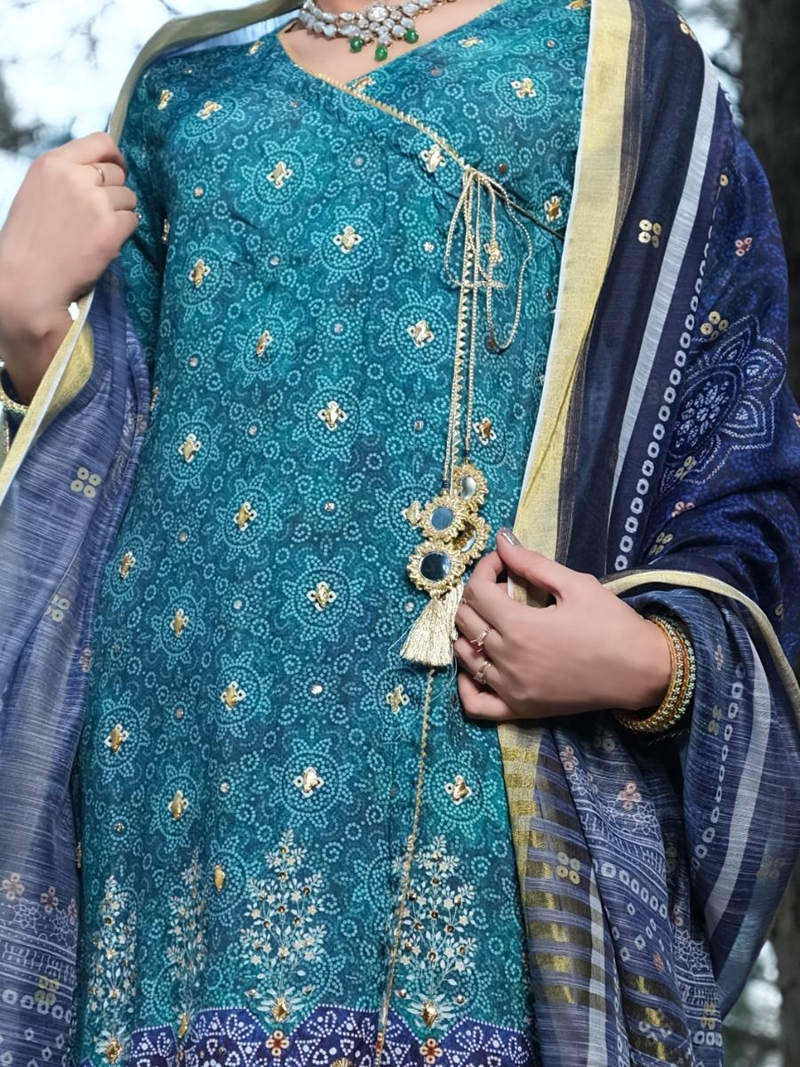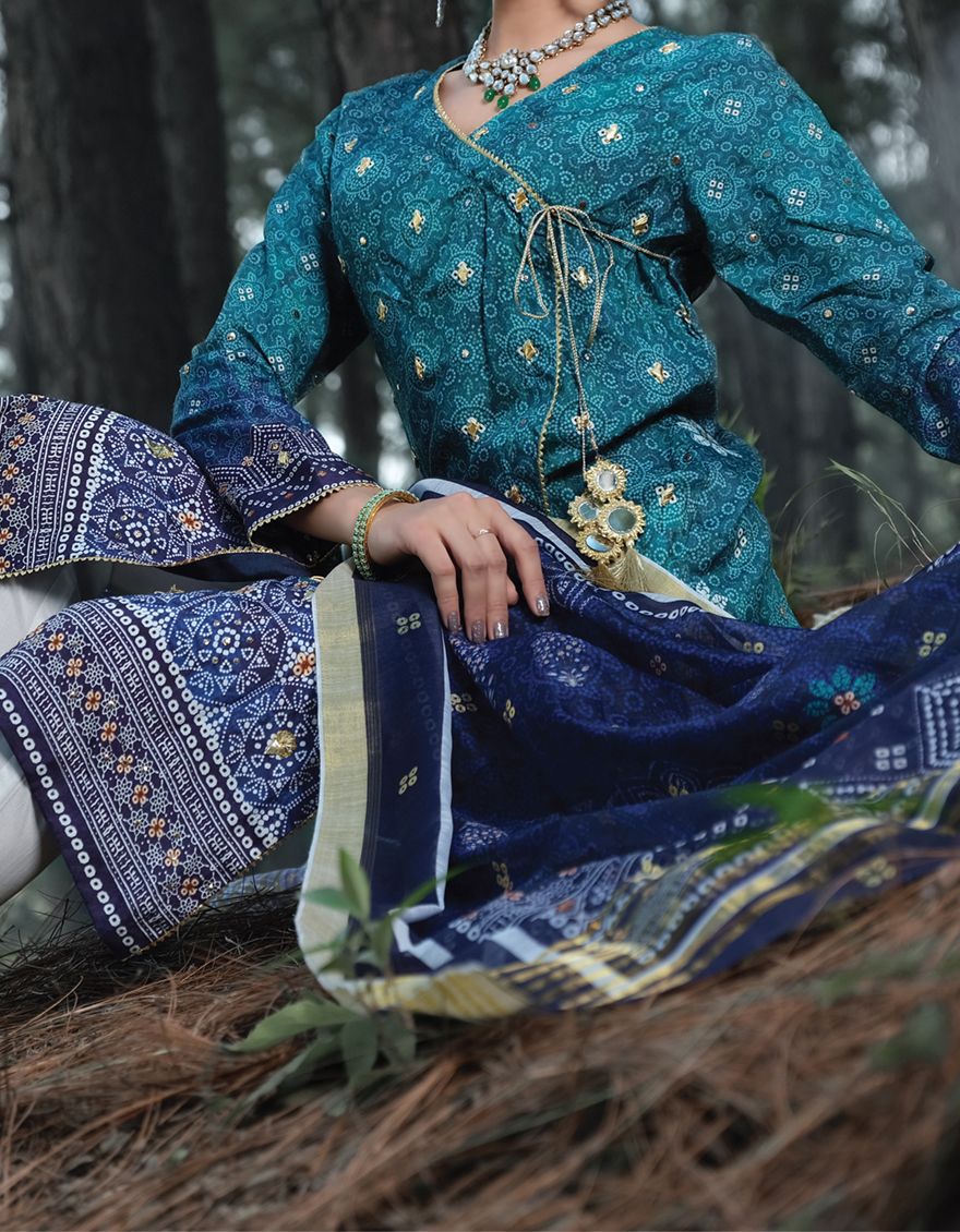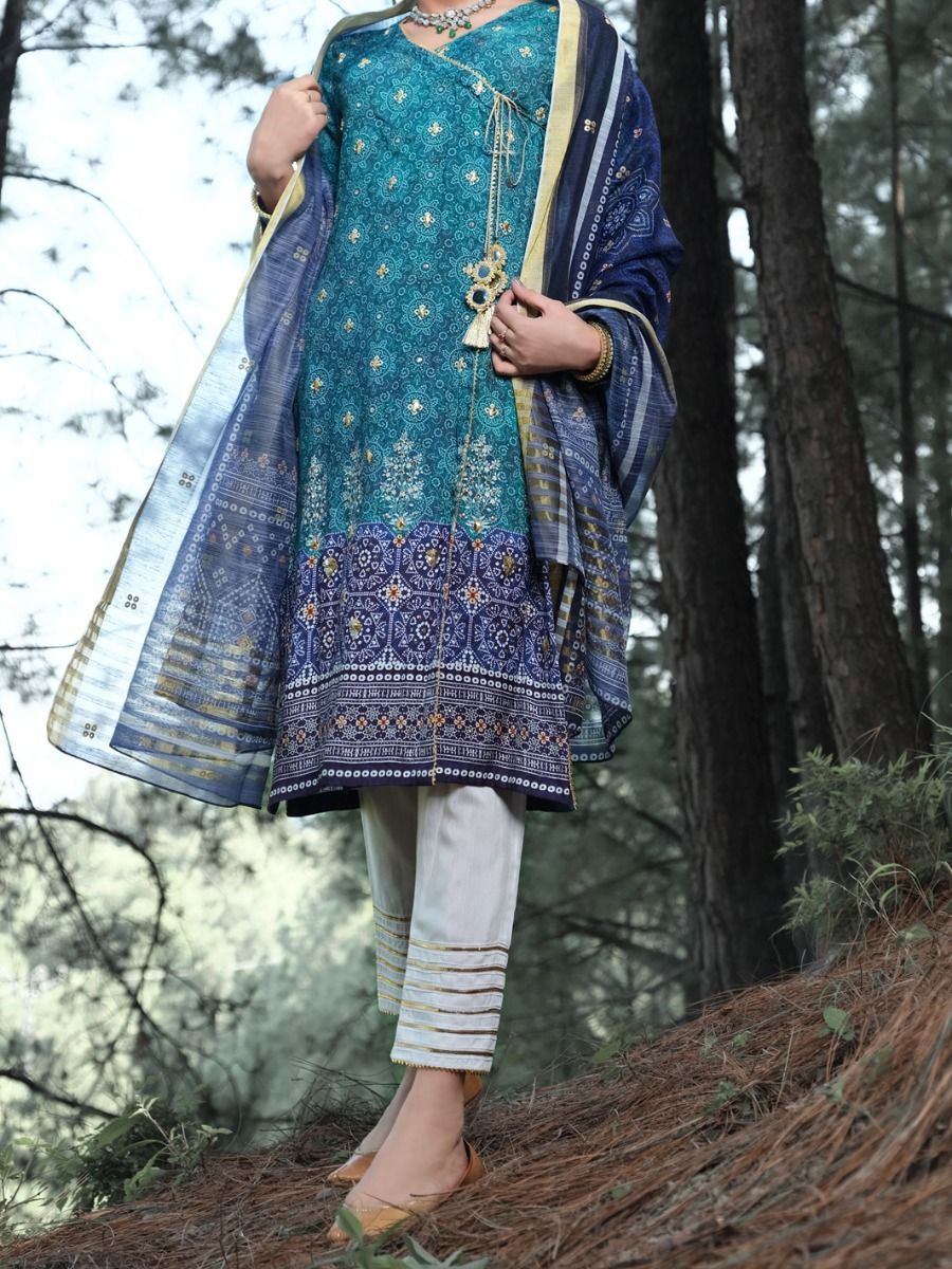 TEAL SILK 3PC STITCHED | ALP-3PS-NZ-989/S V-4 2020