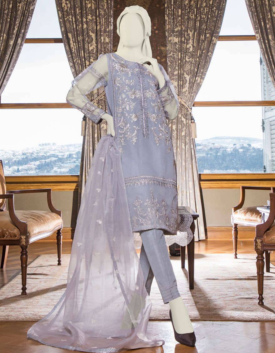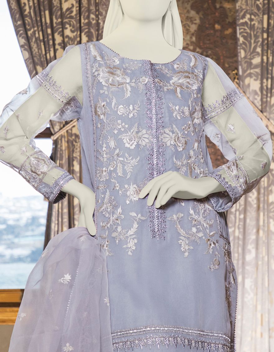 GREY ORGANZA 3PC UNSTITCHED | JJLS-S-JFU-NZ-21-703 FB/MF-663