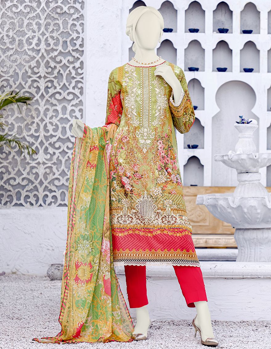 Collection Type Ladies Printed & Embroidered 3pcs Suit With Chiffon Dupatta