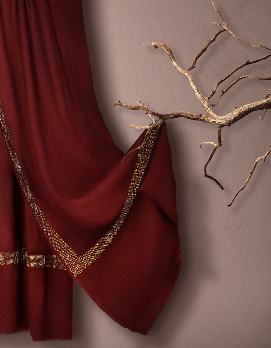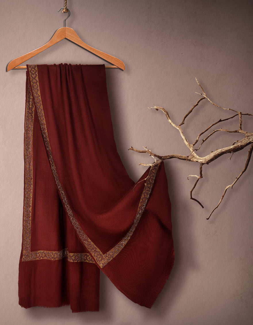 MAROON SHAWL | JSH-SHW-NZ-21-0021 FB/GOLD STUD SHWAL - MAROON